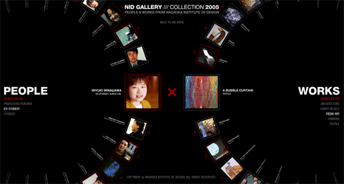 Via Gene Smith, the gallery page for the NID Gallery uses an interesting interface navigated with your mouse's scroll wheel. Very intuitive and easy to use.