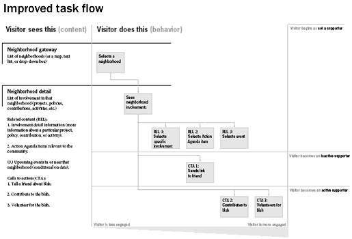 This improved task flow (an interaction flow?) adds important context about the user and the content (39.5kb PDF file).