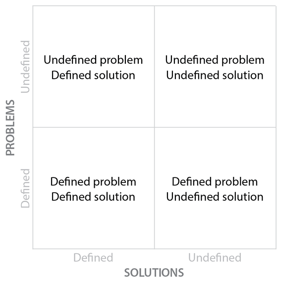 Up to now, we’ve focused on how well we’ve defined the problem and the solution. Agile and lean commentary focuses on defined problems and solutions in an effort to avoid rework (an agile boogeyman). We can change our perspective, so we focus on the undefined problem.